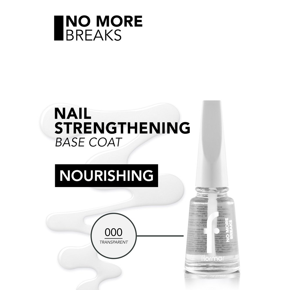 Flormar No More Breaks aide vos ongles à retrouver leur force d’antan grâce au calcium et aux protéines qu’il contient. Les ongles deviennent plus souples car ils sont nourris avec soin par la base. Plus les ongles sont souples, moins ils se cassent. Vous pouvez appliquer cette base incolore au fini brillant tous les jours ou tous les deux jours.
